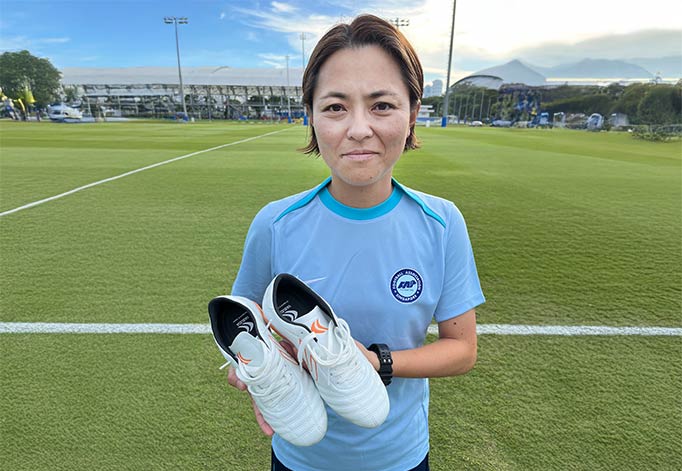地面と芝生の根、ボールが当たる足の感覚、履いていて楽しい気分になる、このスパイクで、選手・スタッフとシンガポールで活動に励みます。
