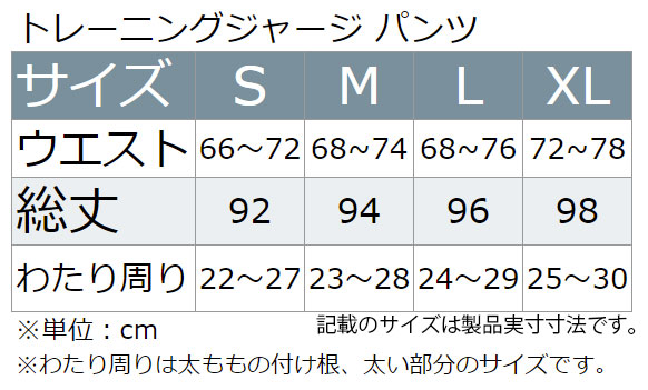 本製品はトレーニングジャージのトップスのみです。上下のサイズを別にしたい場合にご購入ください。
